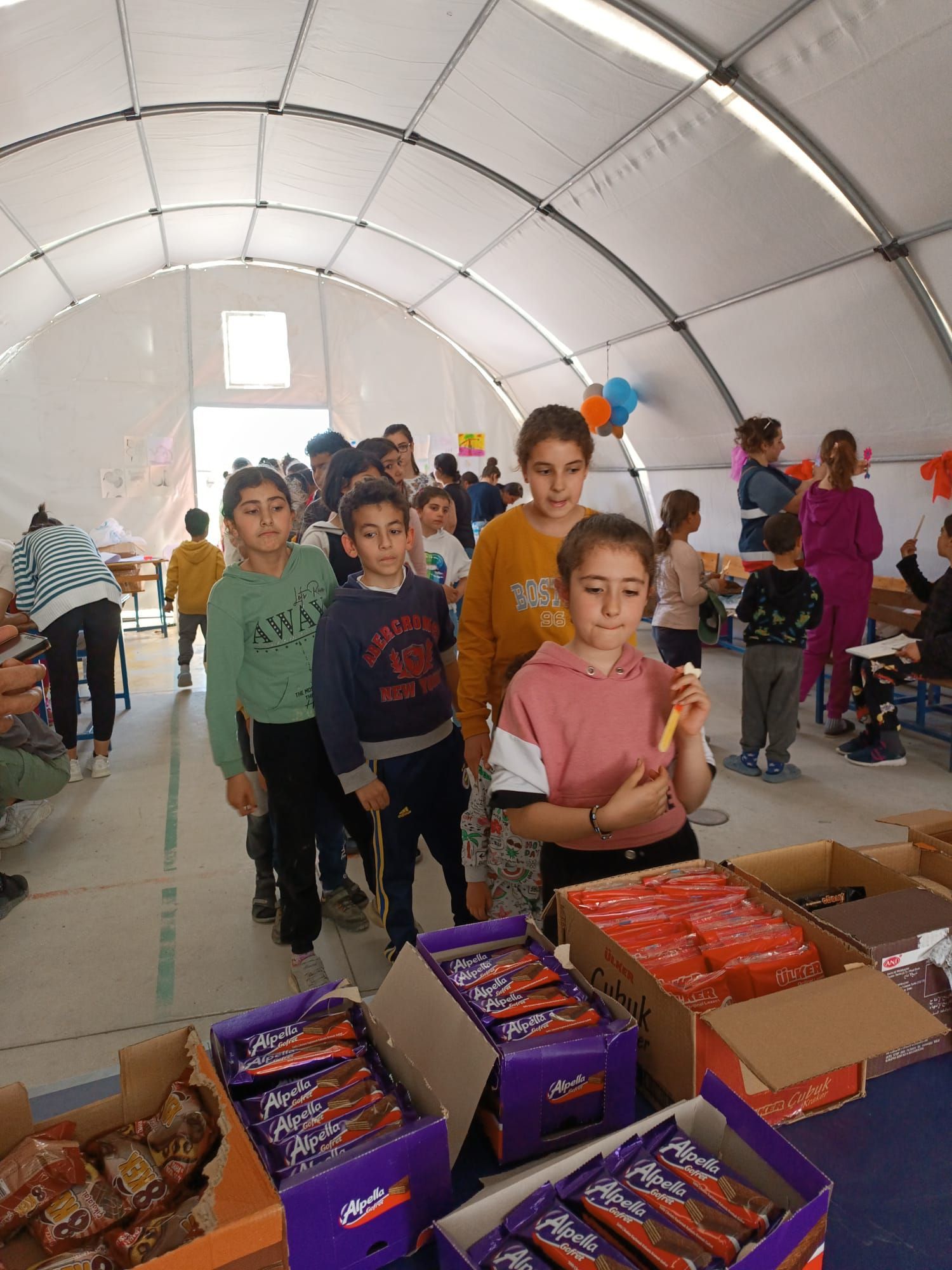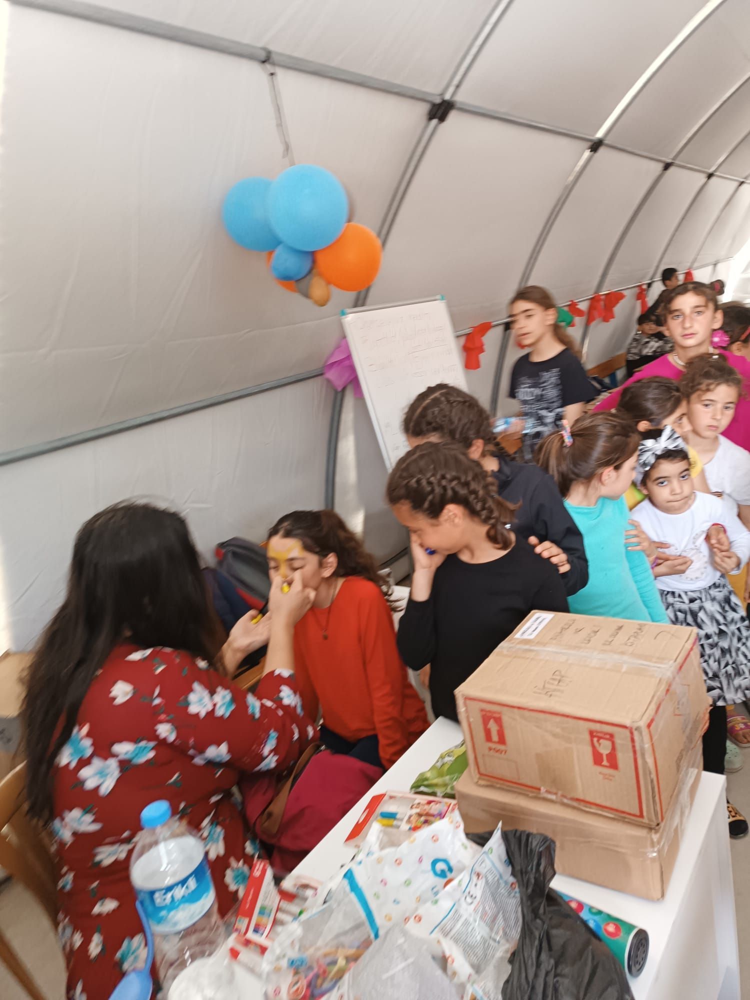 Unfortunately, not every child is lucky enough to celebrate with their family. Many children became orphans, especially after the earthquake in February. We celebrated with some of these children this year. We painted, experimented, made up and jumped together. A children's entertainer also ensured a lot of laughter. Gifts included books, coloring books, sweets and animal balloons. Thanks to your support, we were able to make many children happy that day. So when you look into the shining eyes of the children, know that you were part of it.